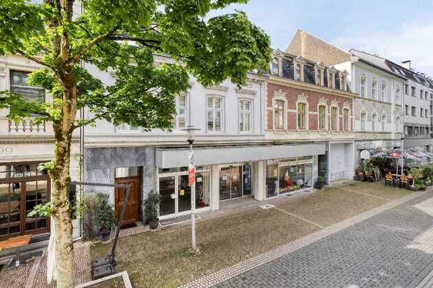 Das Ladenlokal, gepaart mit einer Lagerfläche, befindet sich in einem gepflegten Wohn- und Geschäftshaus in der belebten Fußgängerzone Erkraths.
